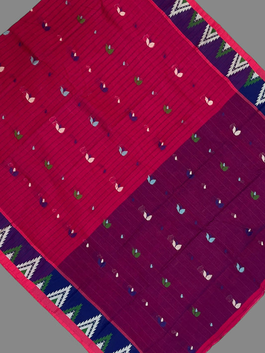 Big Temple Checks Magenta Pink Half-Mix Sarees