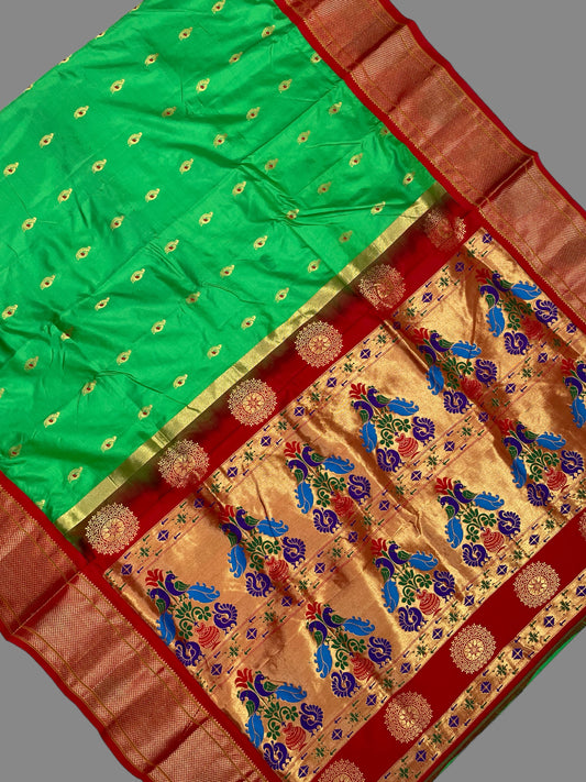Bridal Big Checks Butta Neon Green Pure Silk Sarees