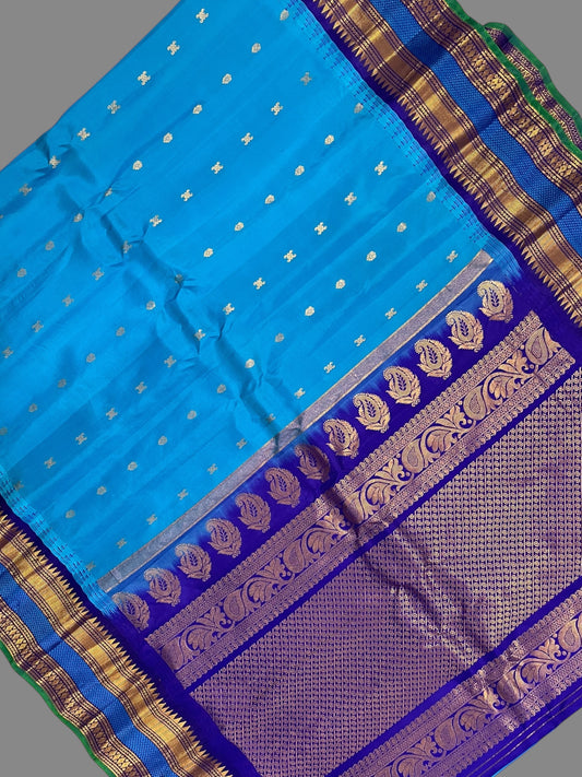 Gap Border Checks Light Sky Blue Pure Silk Saree