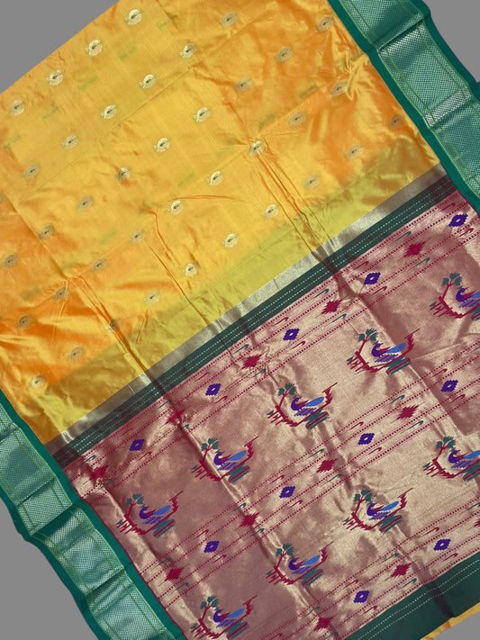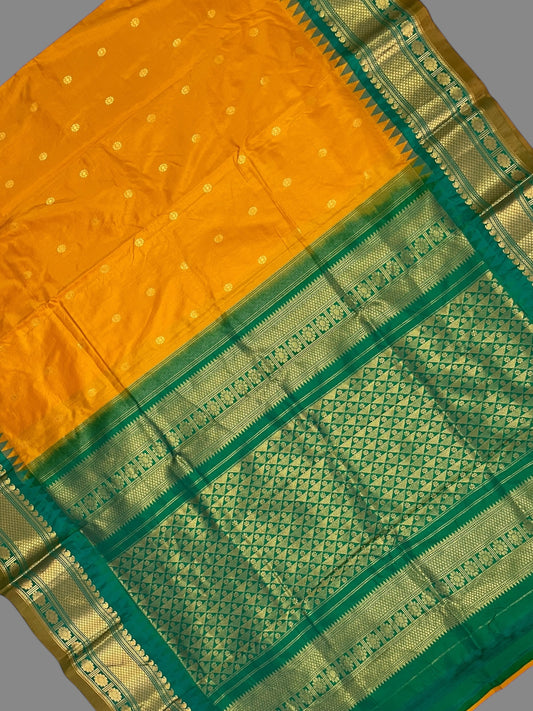 Gadwal Big Border Golden Yellow Pure Silk Sarees