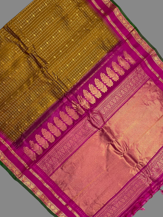 Gadwal Small Checks Butta Burgundy Pure Silk Sarees