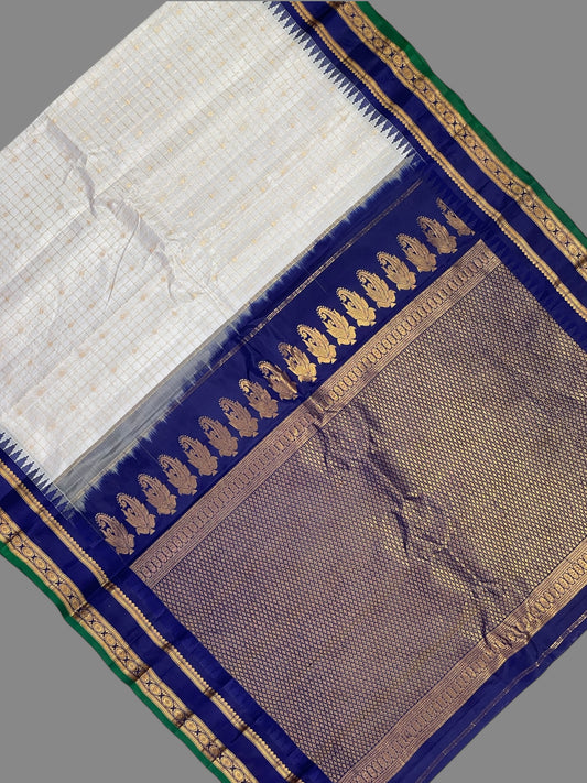 Bridal Big Checks Butta Half White Pure Silk Sarees