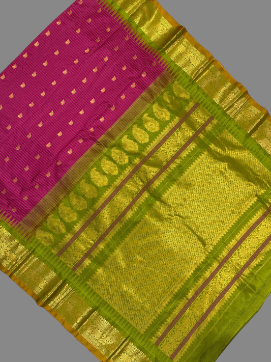 Gadwal Small Checks Butta Magenta Pure Silk Sarees