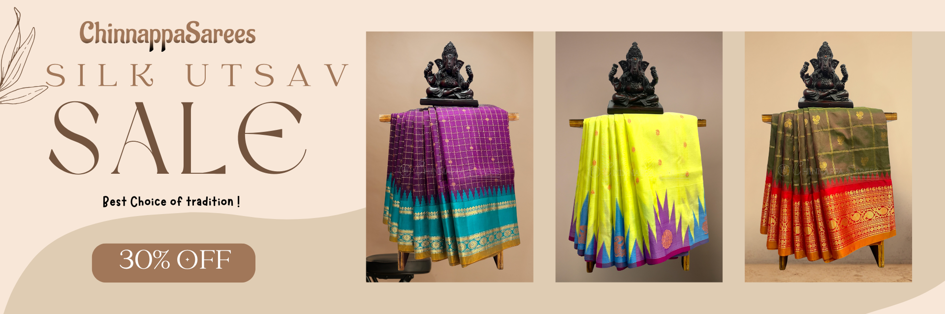 Discover the luxury of Pure Silk Sarees at Chinnappa Sarees. Handwoven for...