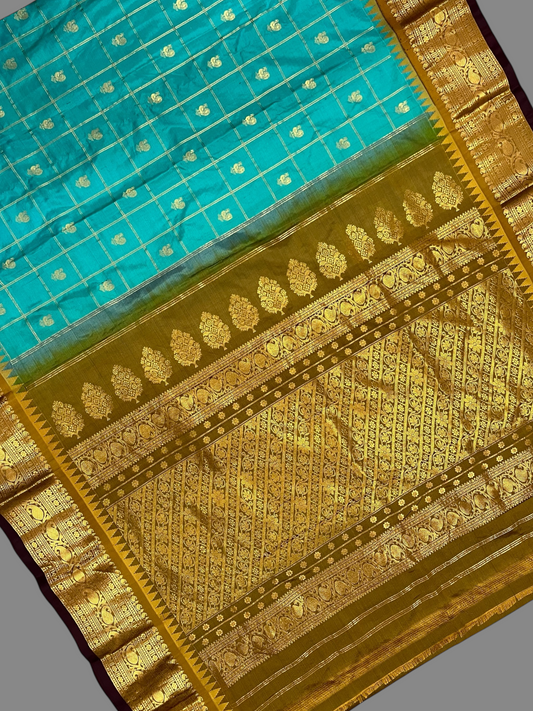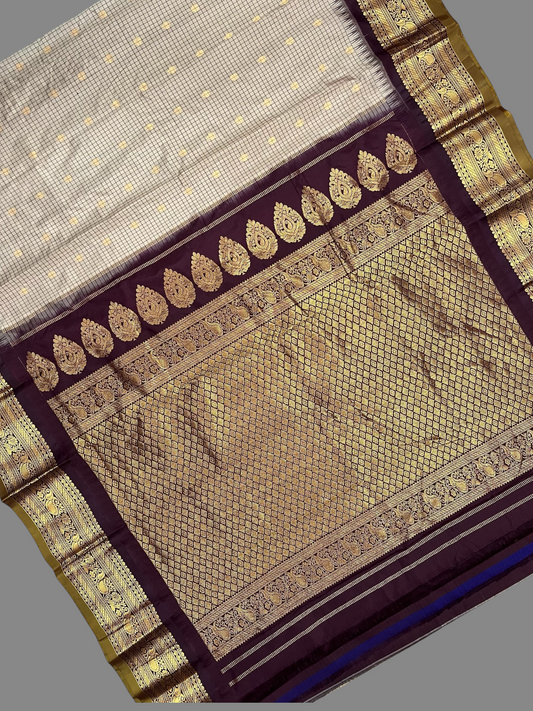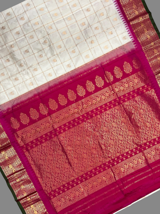Gadwal Small Checks Butta Grey Pure Silk Sarees