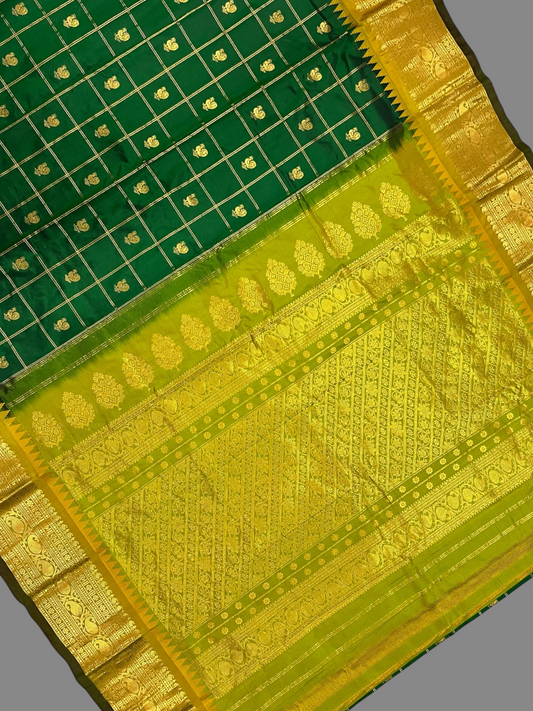 Bridal Big Checks Butta Dark Green Pure Silk Sarees