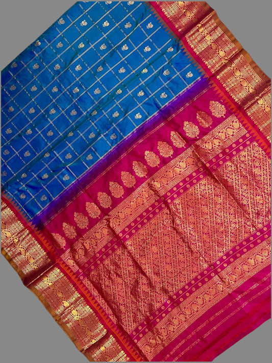 Venkat Giri Checks Light Blue Pure Silk Saree