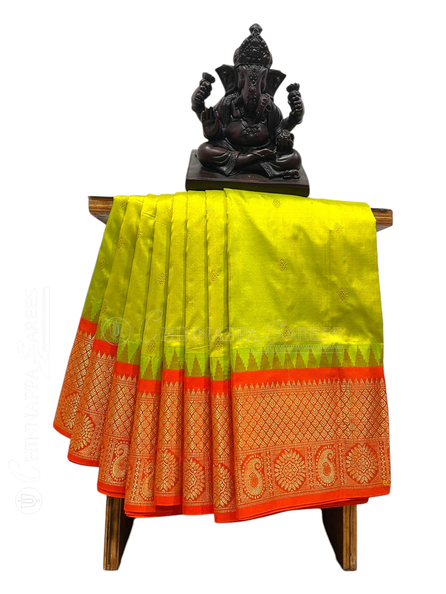Kanchi Mango Border Silk Sarees: Luxurious Kanchipuram silk with auspicious mango motifs...