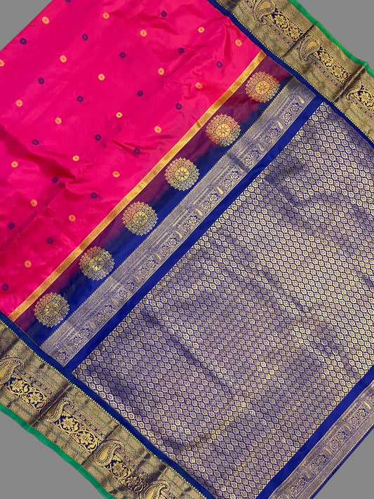 Bridal Mango Border Dark Hot pink Pure Silk Saree
