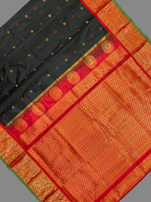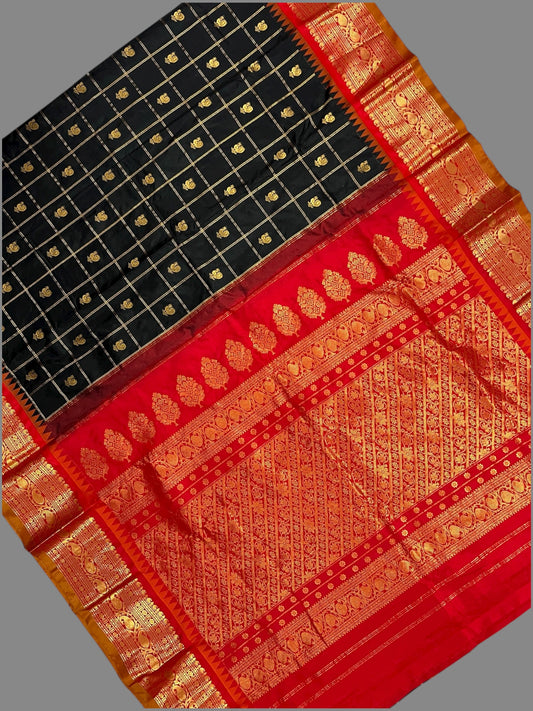 Bridal Big Checks Butta Black Pure Silk Sarees