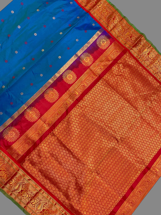 Bridal Mango Border Peacock Blue Pure Silk Saree