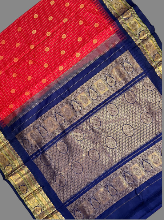 Bridal Small Checks Butta Red Pure Silk Sarees