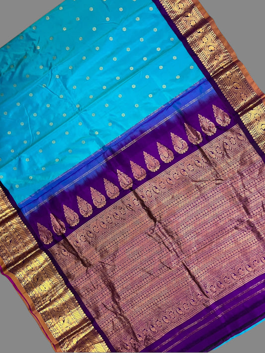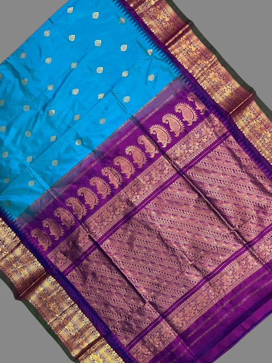 Gadwal Big Border Azure Blue Pure Silk Sarees