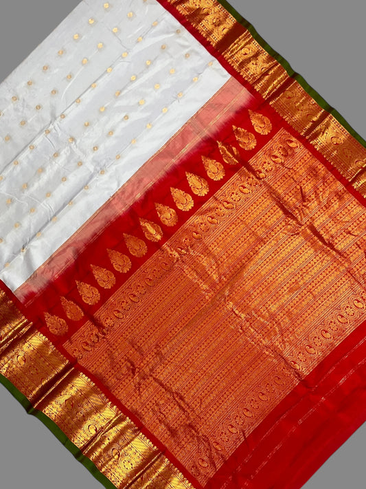 Gadwal Big Border White Pure Silk Sarees