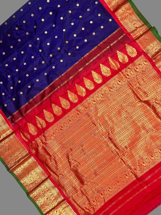 Gadwal Big Border Blue Pure Silk Sarees