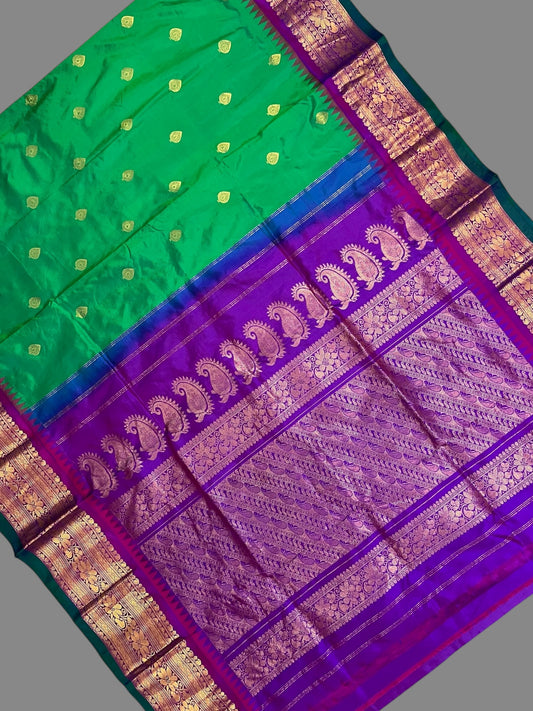Gadwal Big Border Green Pure Silk Sarees