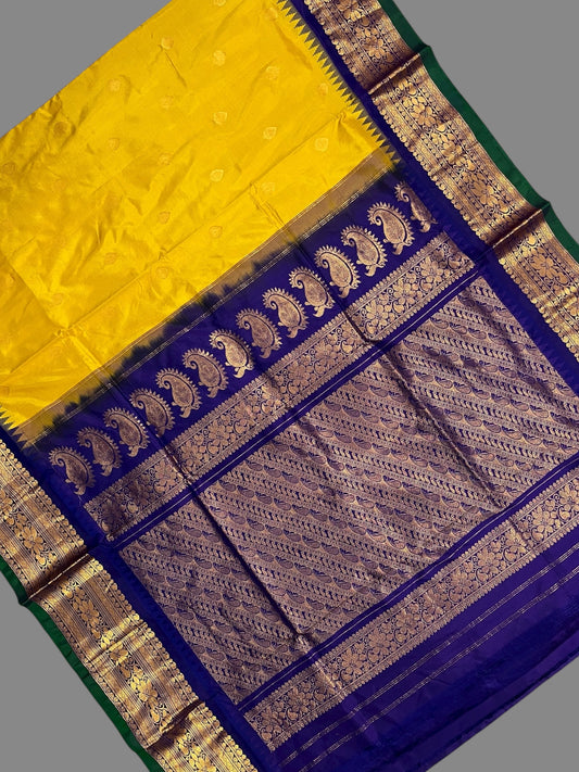 Gadwal Big Border Yellow Pure Silk Sarees