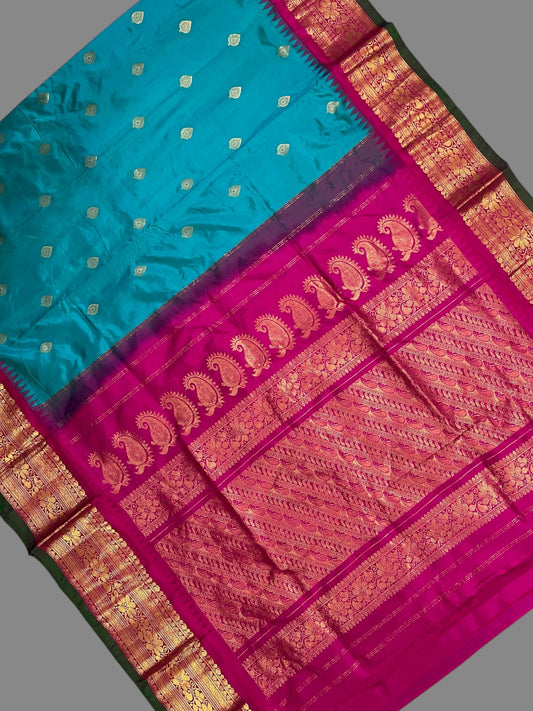 Gadwal Big Border Light Ananda Blue Pure Silk Sarees