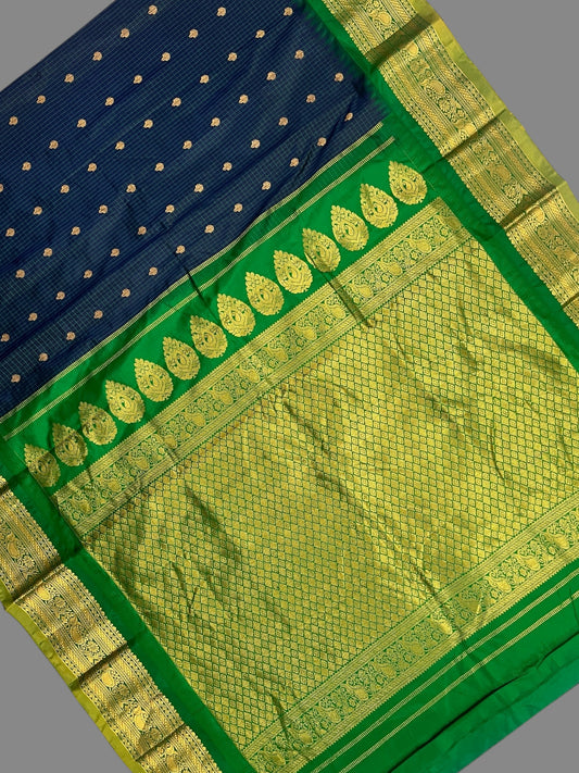 Gadwal Small Checks Butta Dark Blue Pure Silk Sarees