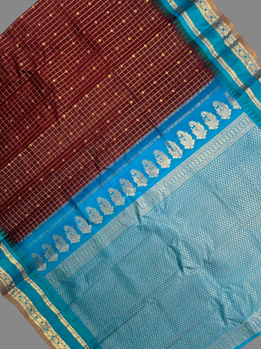 Gap Border Checks Brown Pure Silk Saree