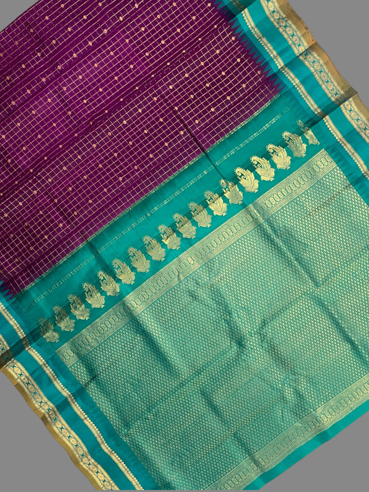 Gap Border Checks Dark Violet Pure Silk Saree