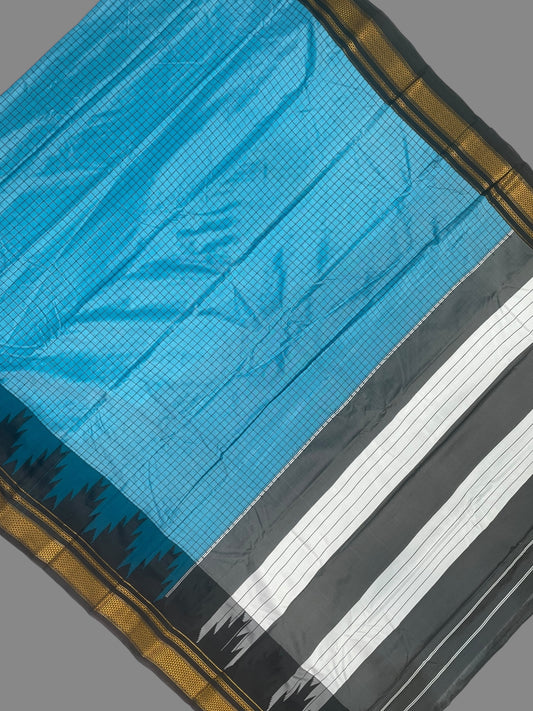Big Temple Checks Sky Blue Half-Mix Sarees