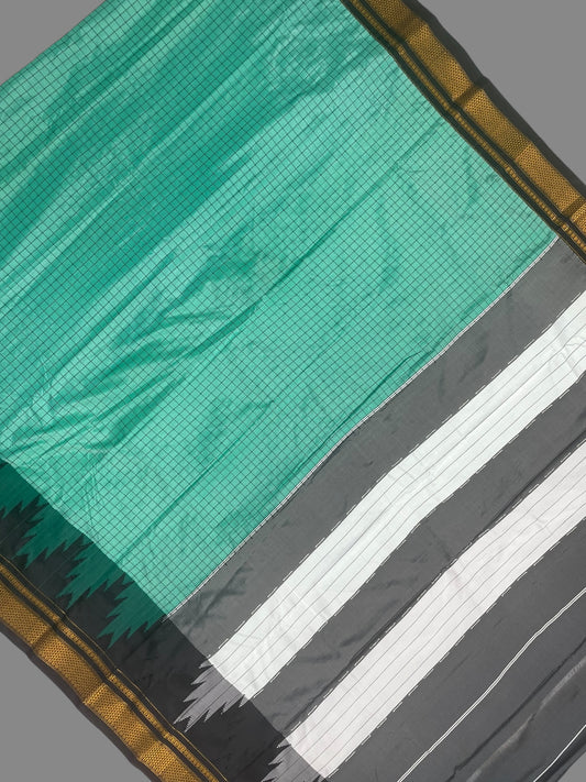 Big Temple Checks Teal green Half-Mix Sarees
