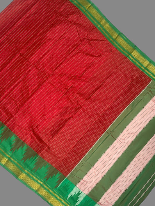 Big Temple Checks Burgundy Half-Mix Sarees