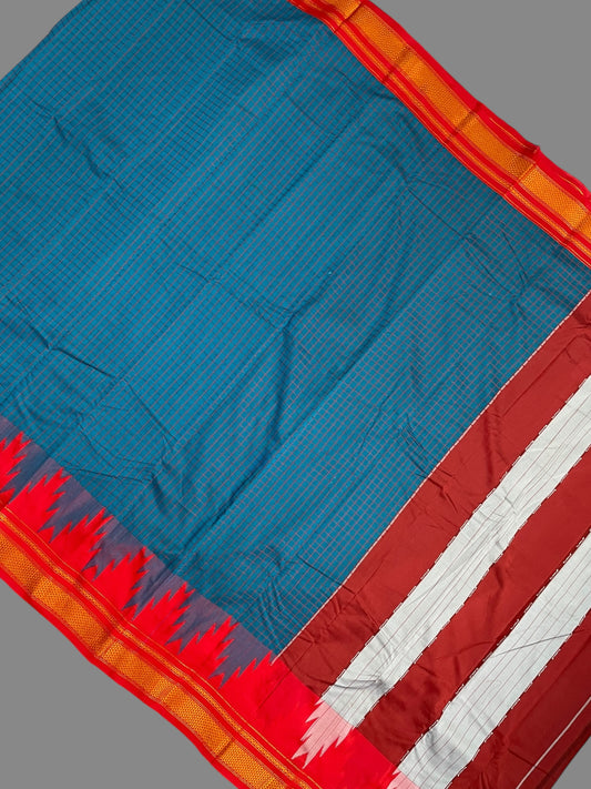 Big Temple Checks Turquoise Half-Mix Sarees