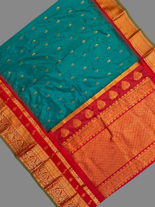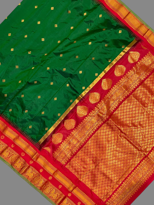 Kanchi Border Butta Bottle Green Pure Silk Saree