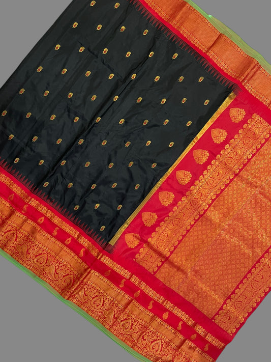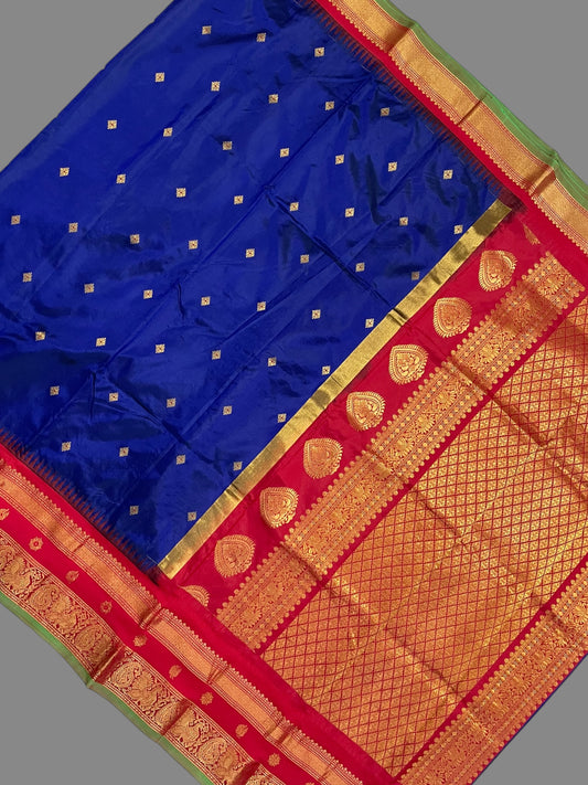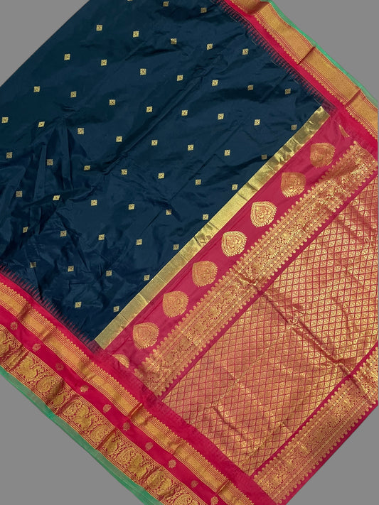 Kanchi Border Butta Dark Blue 1 Pure Silk Saree