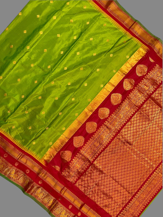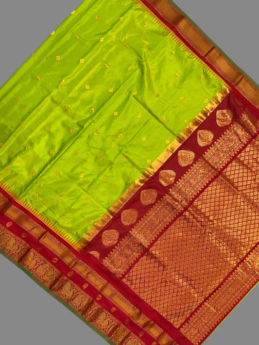 Kanchi Border Butta Mehendi Green Pure Silk Saree