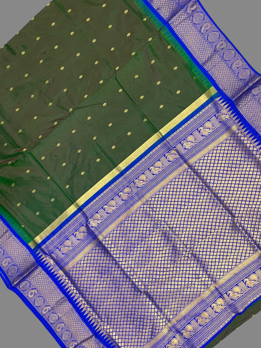 Kanchi Mango Border Dull Green Silk Sarees
