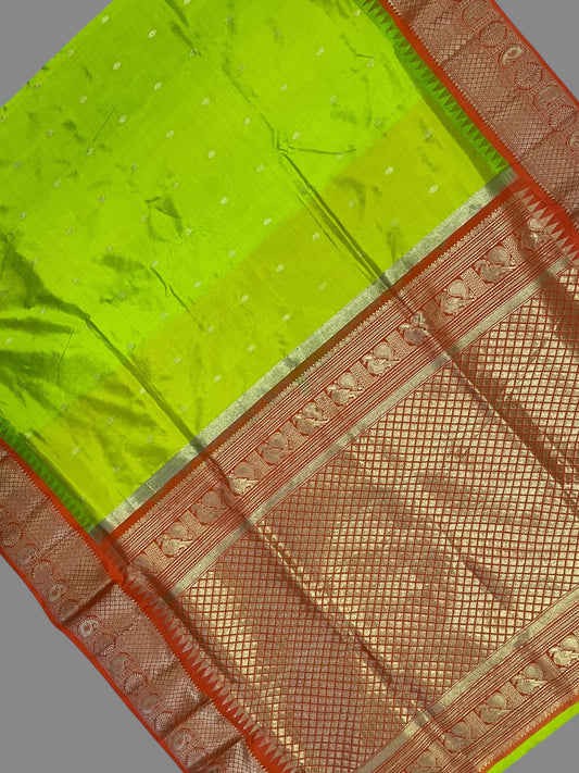 Kanchi Mango Border Neon Green Silk Sarees