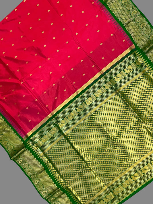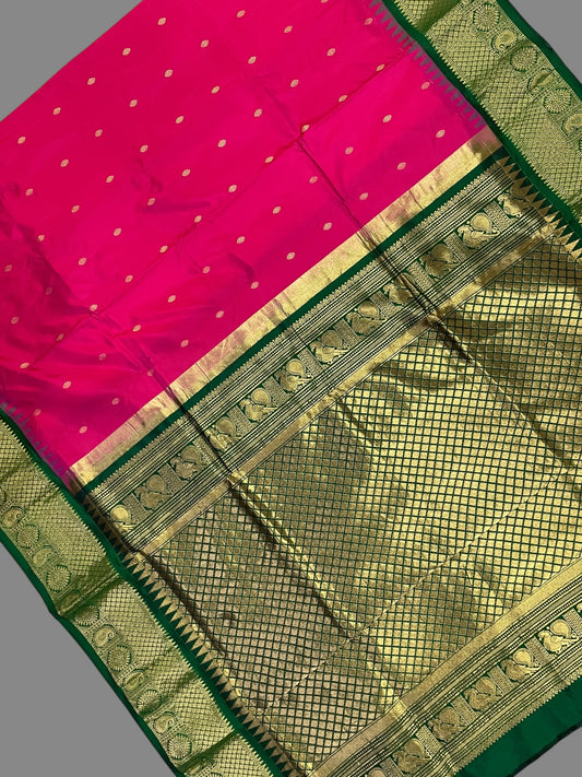 Kanchi Mango Border Tomato Pink Silk Sarees