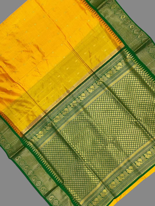 Kanchi Mango Border Golden Yellow Silk Sarees