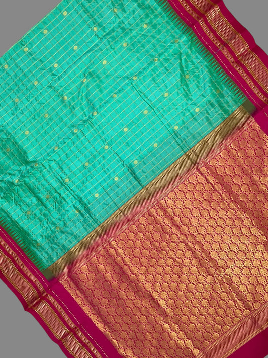 Big Peshwai Checks Sea Green Pure Silk Saree