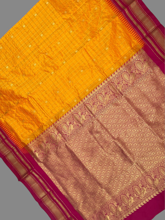 Big Peshwai Checks Orange 1 Pure Silk Saree