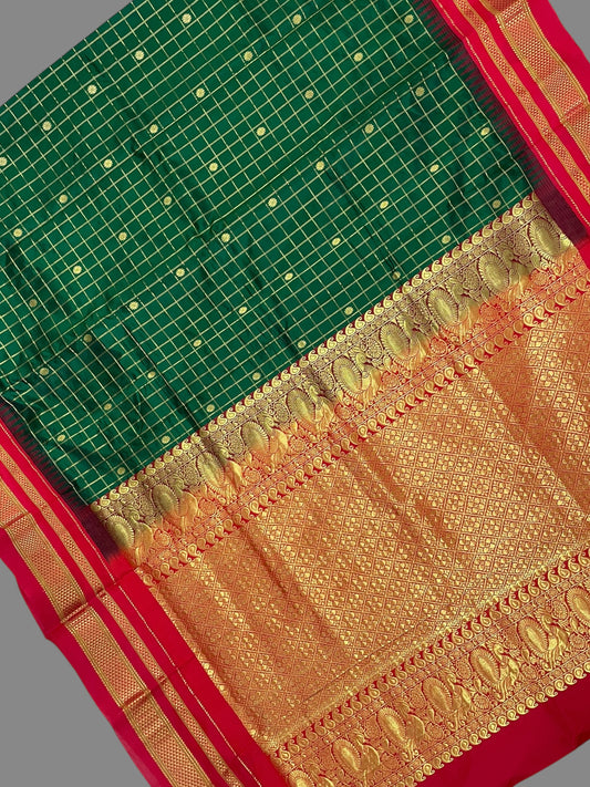 Peshwai Big Checks Dark Green Pure Silk Saree