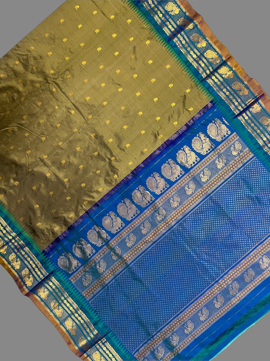 Mahalaxmi Border Dull Green Pure Silk Saree