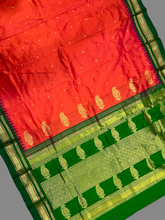 Peshwai Border Orange Pure Silk Saree