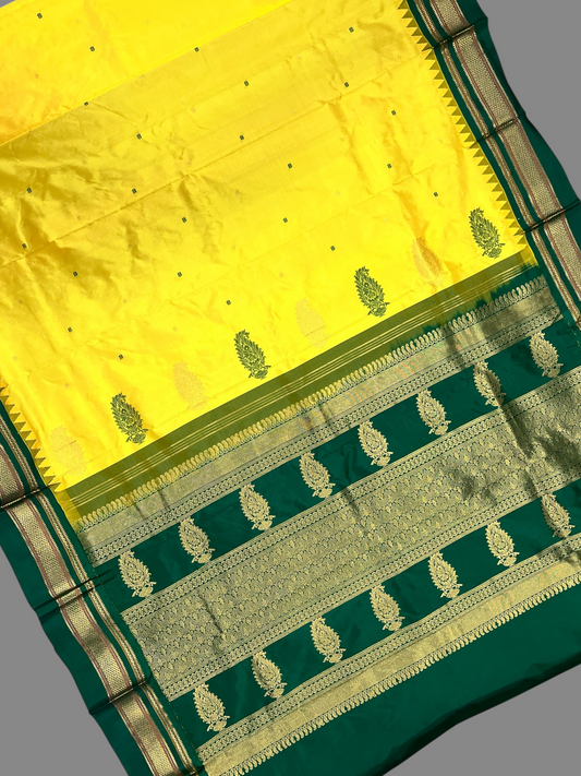 Peshwai Border Yellow Pure Silk Saree