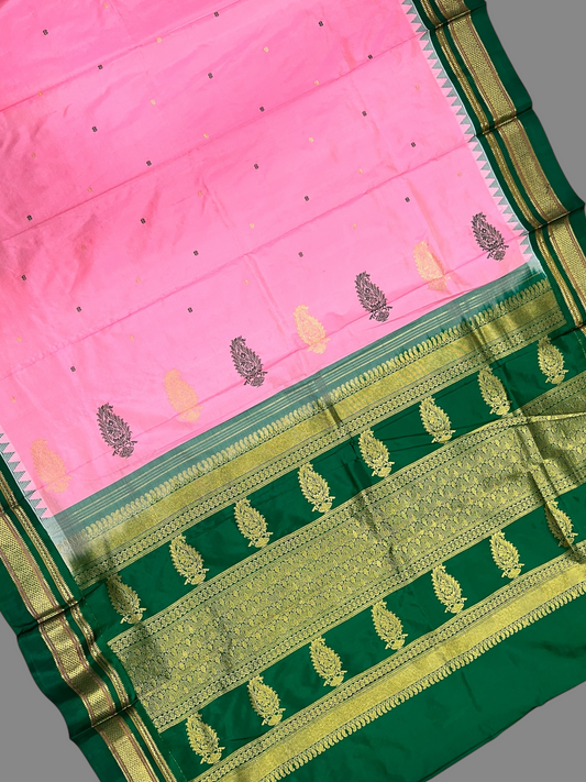Peshwai Border Peach Pink Pure Silk Saree