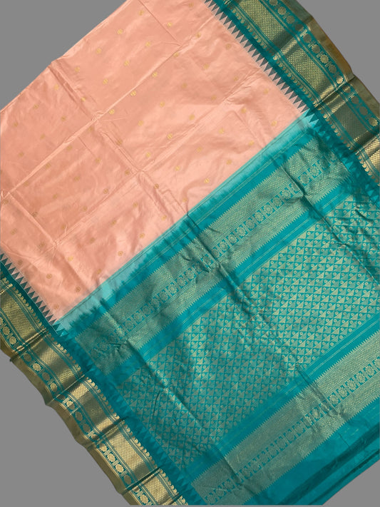 Narayanpet Plain Cream Pure Silk Saree