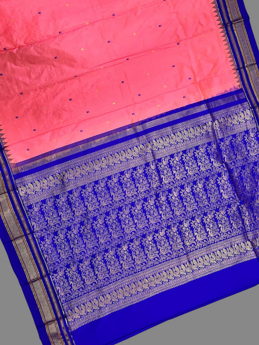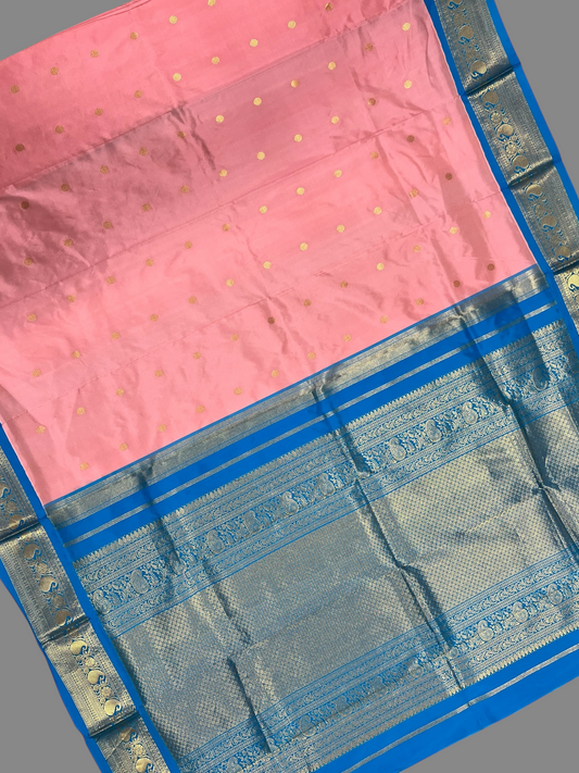Peshwai Border Peach Pink Pure Silk Saree