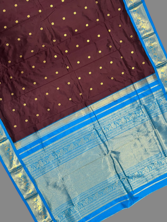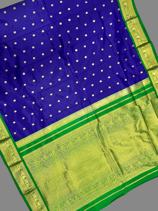 Peshwai Border Navy Blue Pure Silk Saree