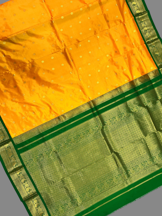 Narayanpet Plain Yellow colour pure Silk Saree