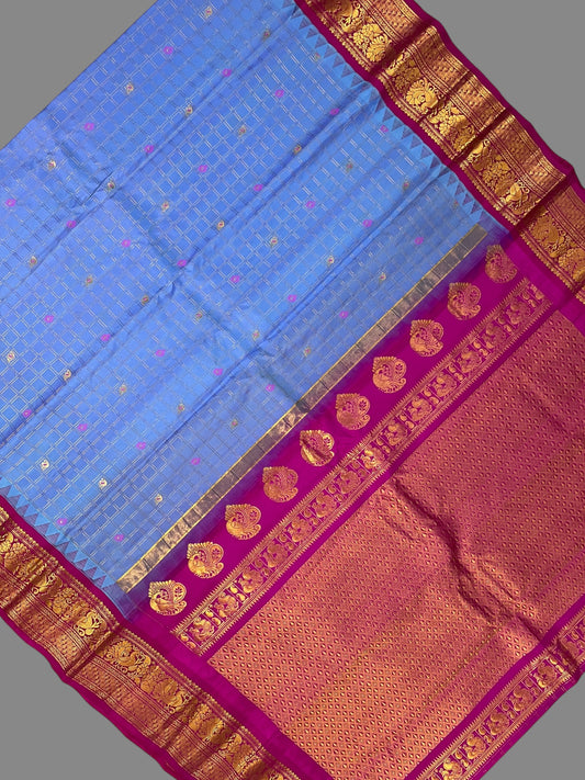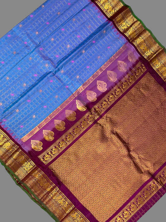 Venkat Giri Checks Deep Blue Pure Silk Saree
