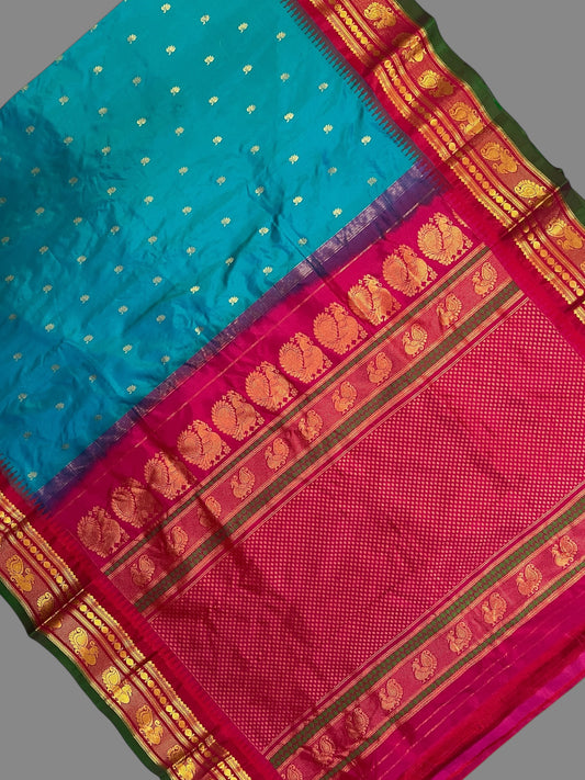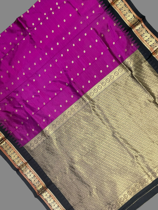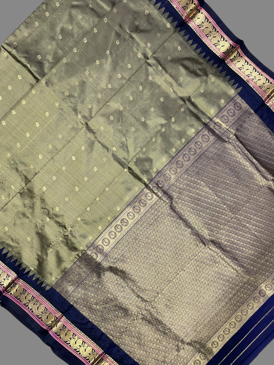 Kanchi Border Butta Dark Blue 1 Pure Silk Saree