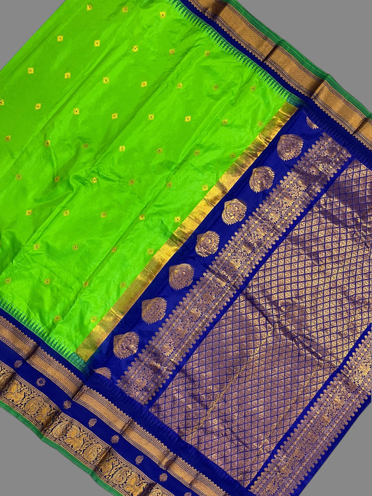 Kanchi Border Butta Parrot Green Pure Silk Saree